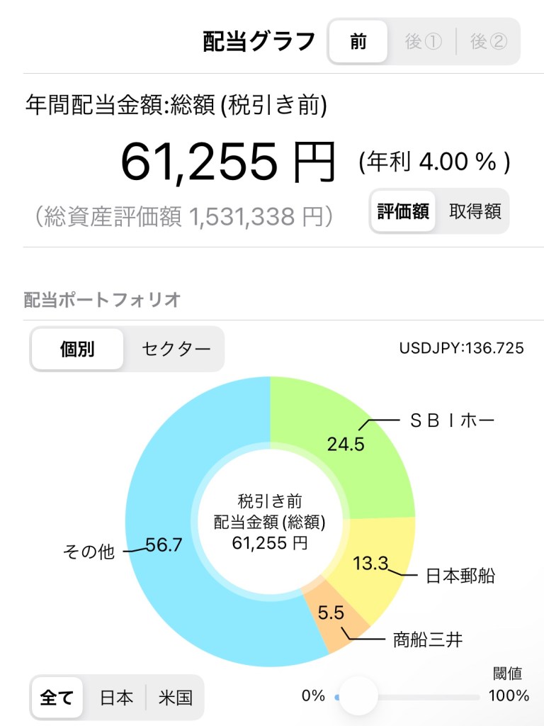 それと、購入した銘柄と金額を入れると配当金を計算してくれる便利なアイテムがあるので、そちらで計算した年間配当額は…