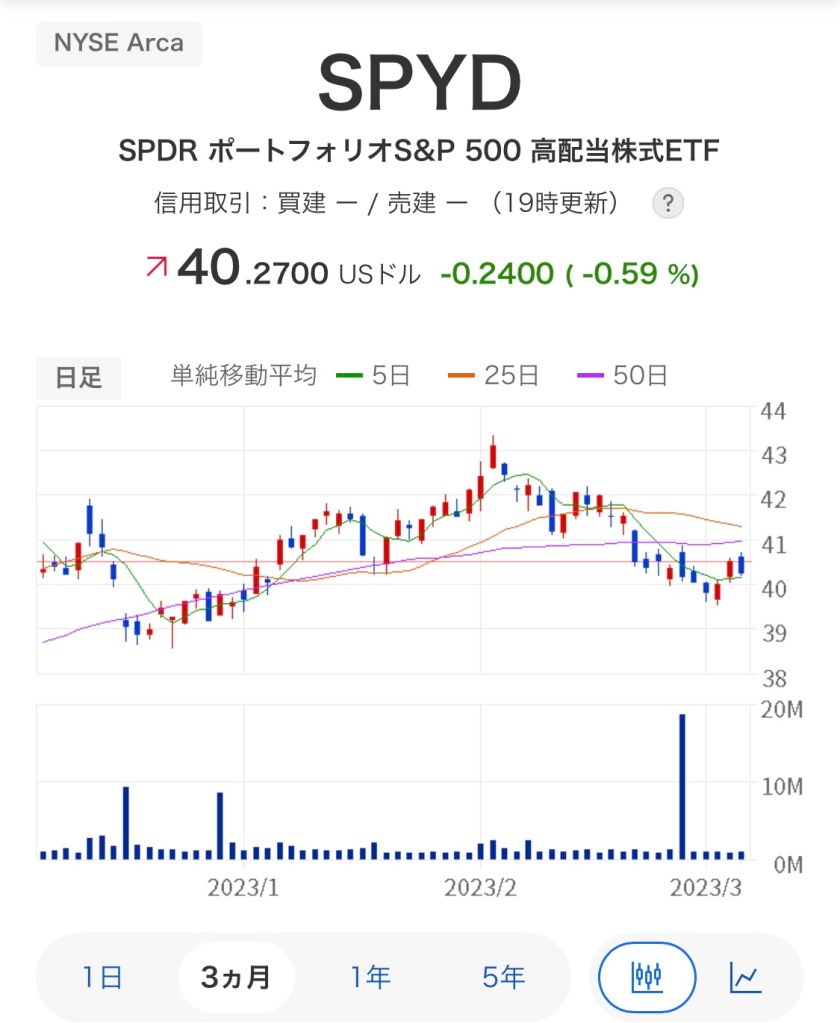 最近、高配当ETFを積立購入してます。今購入しているのは、この『SPYD 』という銘柄。